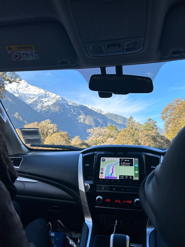 In the next three and a half hours, we drove through some of the most surreal scenery of the trip so far. Every turn of the drive revealed a new view to admire. In particular, the view as we drove alongside the beginning of Lake Wānaka was unforgettable. Don’t be afraid to stop on the side of the road to take some photos, it is 100% worth it. My camera roll still hasn’t recovered.