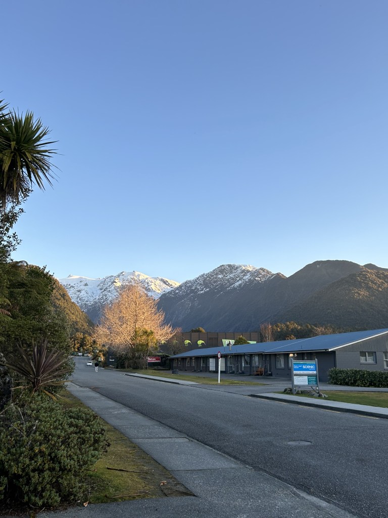 Driving into the sleepy, sequestered town of Franz Josef, we were again shocked by the simplicity of it. A strip of cozy lodges next to another of excursion sellers and restaurants all with the backdrop of the feathery mountains.