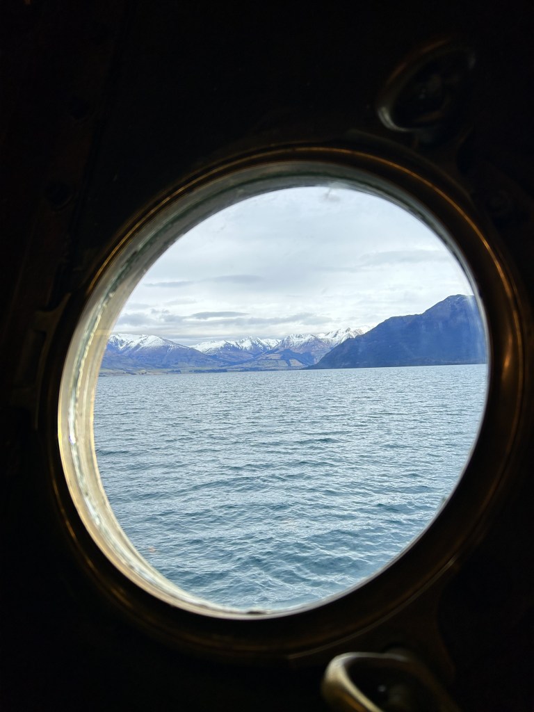 Our first activity was boarding the TSS Earnslaw for a short cruise to Beach Bay. Pine trees and icy mountains surrounded us as we cruised through the aquamarine water. The 1912 TSS Earnslaw is the only remaining commercial passenger-carrying coal-fired steamship in the southern hemisphere and gave us a unique experience. Its antique, wooden structure provided benches for people to sit on. The boat had balcony viewing areas, a lower seating area, a small museum containing its history and a boiler room where passengers could view the coal-firing process.