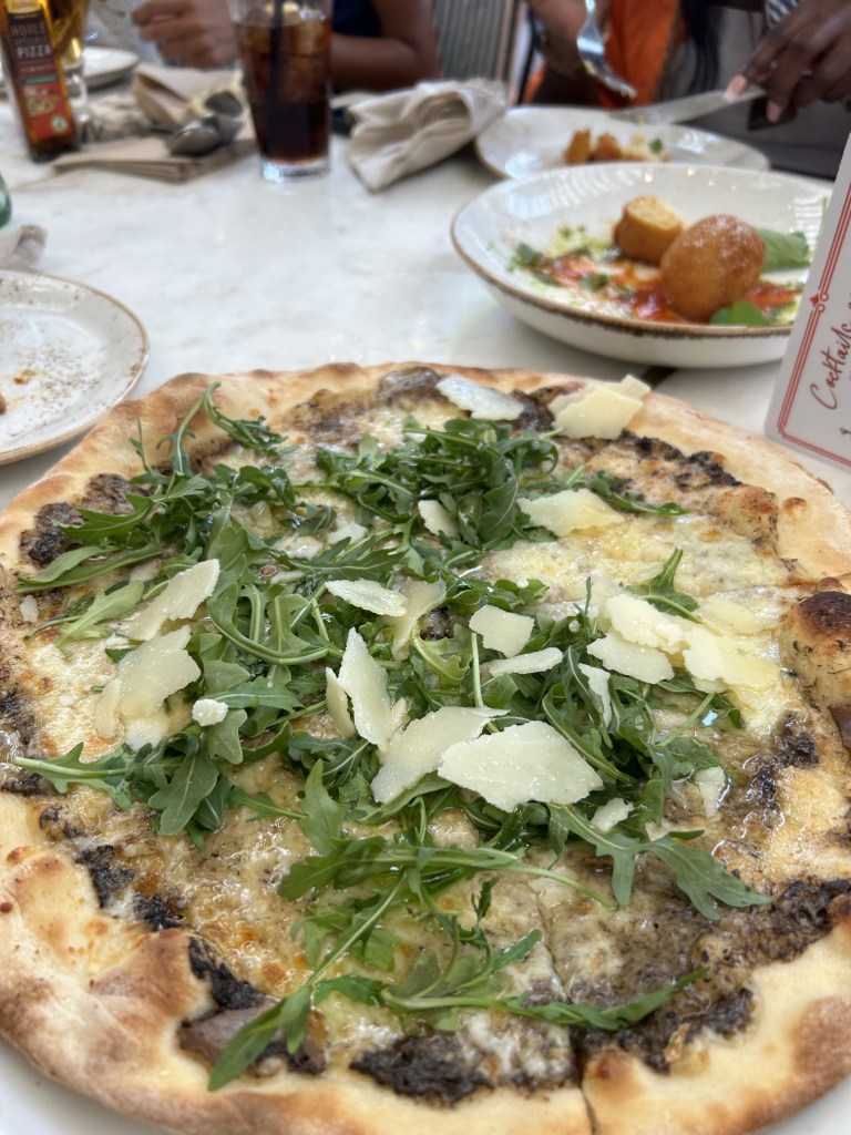 For mains, we chose a truffle mushroom pizza, a lovely option but as someone who likes a bit of toppings- I would’ve loved to try the Greek Pizza or el jardín de Puerto Banus.